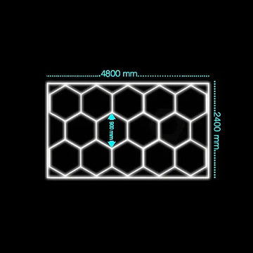 Lampa Premium Hexagon z systemem 14-modułów, 240 x 480 cm.